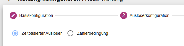 Zeitbasiert: Die Wartung wird basierend auf den Einstellungen zyklisch ausgelöst, dies kann einmalig oder wiederkehrend sein